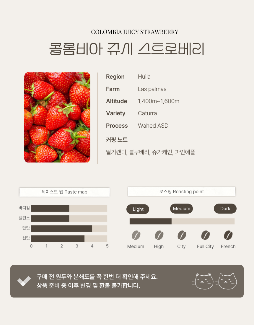 콜롬비아 쥬시 스트로베리 스페셜티 원두커피